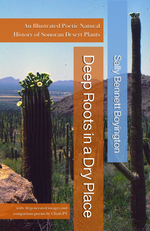 Curious about AI? So was I, when ChatGPT was released for public use. My newest book project, Deep Roots in a Dry Place, grew out of a year-long exploration of ChatGPT and image-generating AIs. In these pages you can directly compare my photographs and poetry about plants of the Sonoran Desert with art and poems generated by AIs.